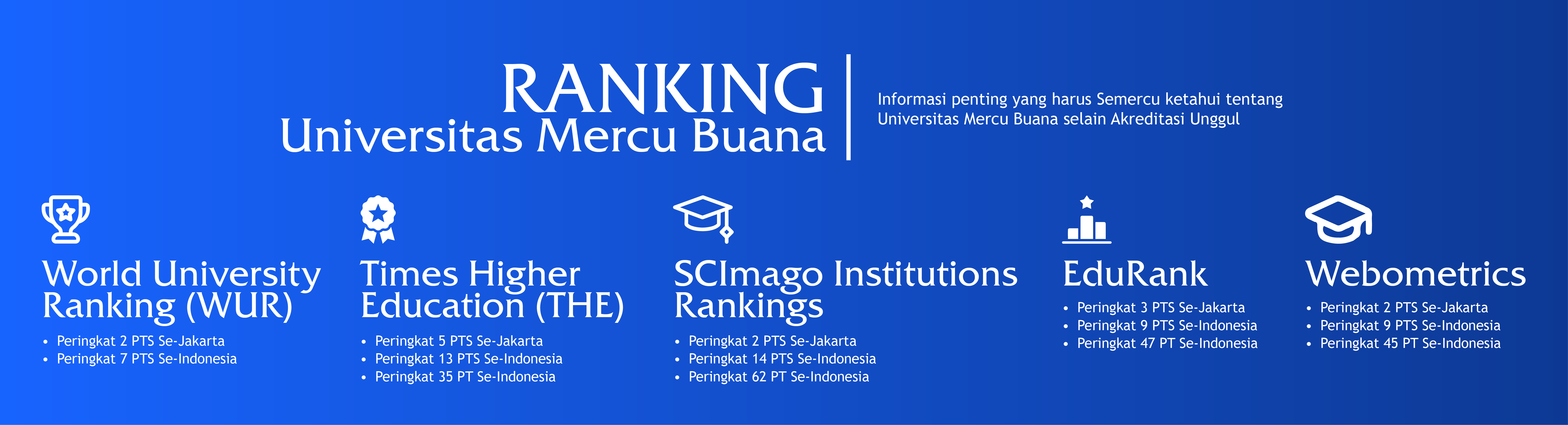 Selamat datang di Universitas Mercu Buana, tempat di mana kami mempersiapkan generasi muda untuk menghadapi tantangan dan peluang di era digital. Tempat di mana inovasi, keunggulan akademik, dan pengembangan karakter menjadi fondasi utama dalam menciptakan generasi pemimpin masa depan.
